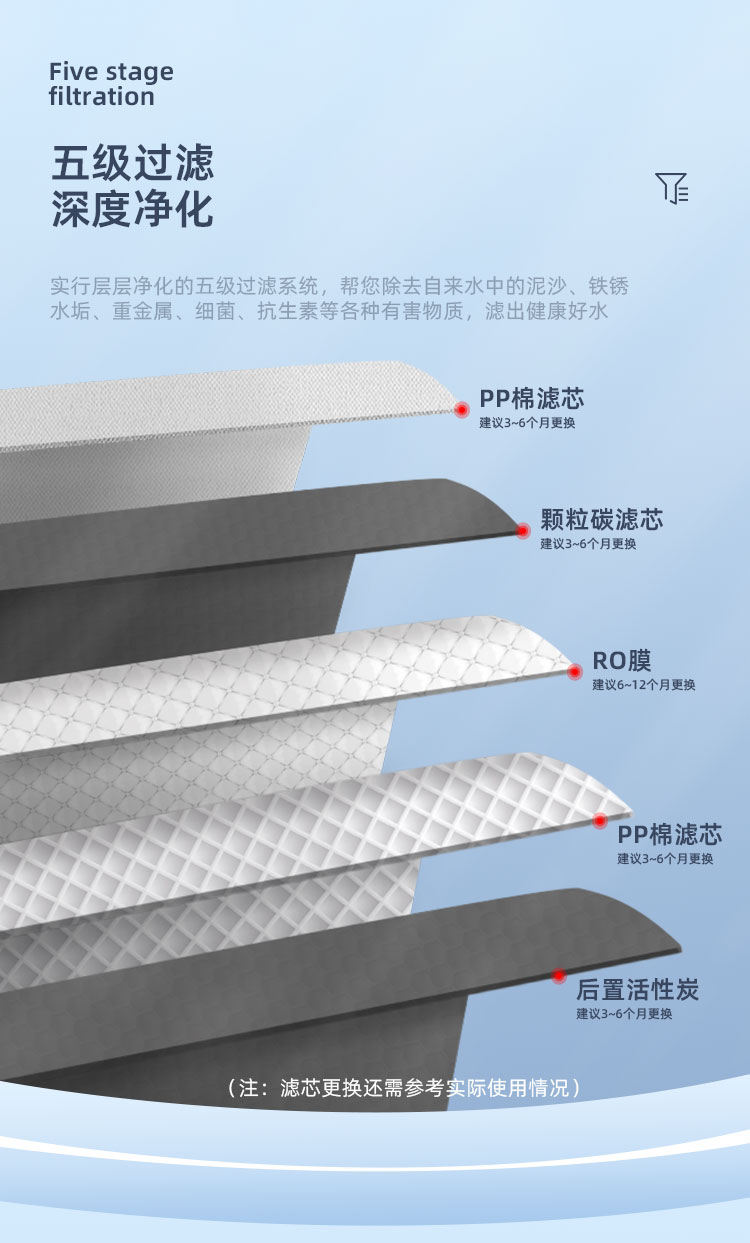 過(guò)濾系統(tǒng):五級(jí)過(guò)濾(RO400+6G壓力桶)